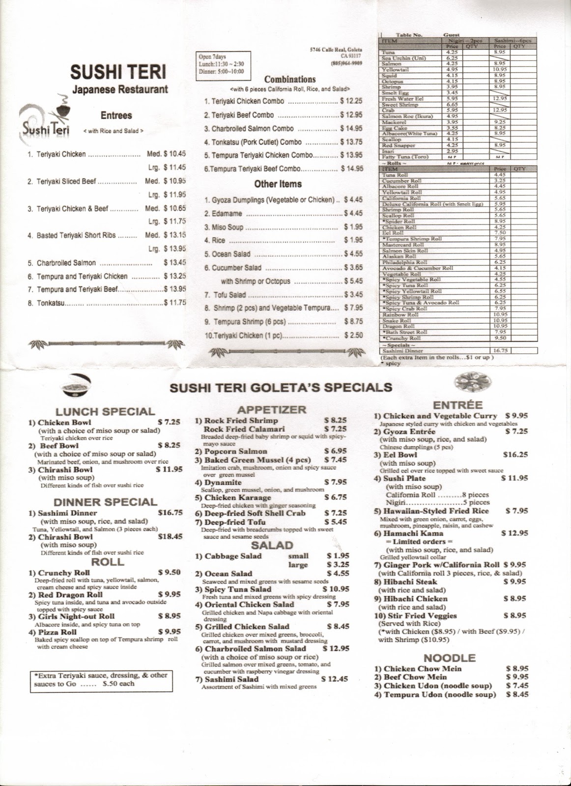Come experience the best sushi in the santa barbara area. Sushi teri offers award winning japanese cuisine at four locations in santa barbara county. Menu including prices for goleta sushi house may have changed since the last time the website was updated. 5744 hollister ave goleta 805 683 8724.