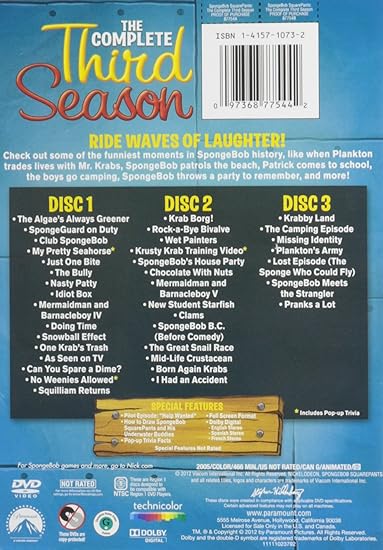 Spongebob Squarepants The Complete Third Season Import Amazon Ca